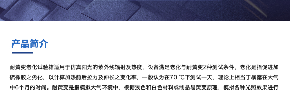 用途:耐黃變老化試驗箱適用于仿真陽光的紫外線輻射及熱度,設備滿足老化與耐黃變2種測試條件,老化是指促進加硫橡膠之劣化,以計算加熱前后拉力及伸長之變化率,一般認為在70 ℃下測